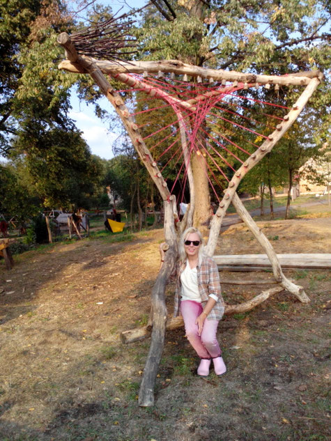 It's also like a big music instrument. People can make sounds and play toghether by hitting the wooden sticks.